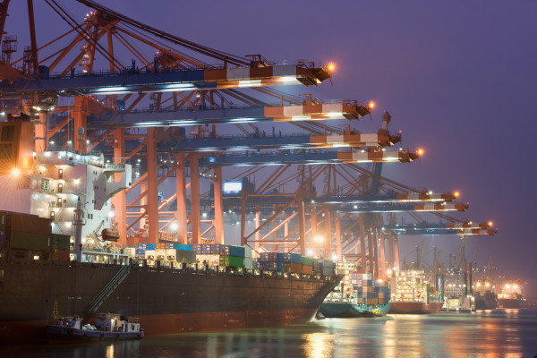 - Beleuchtete Containerbrücken